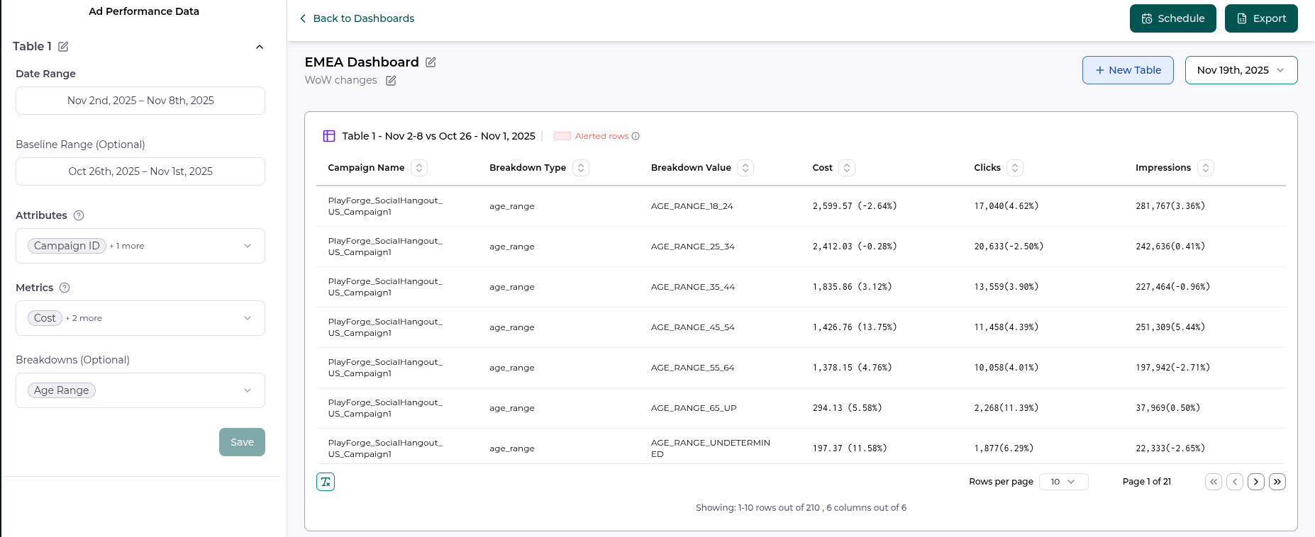 - Add breakdown for deeper analysis (e.g., Gender, Age).