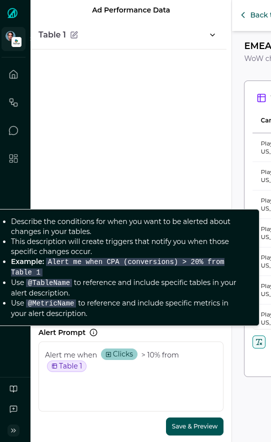 - Describe the conditions for when you want to be alerted about changes in your tables.